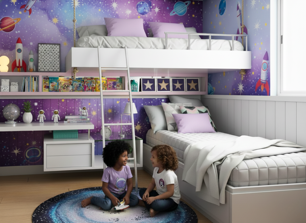 No caso de crianças e adolescentes, a cama suspensa combina diversão e praticidade. Além de servir como lugar para dormir, a estrutura permite que o espaço embaixo seja aproveitado de formas criativas, seja para um cantinho de estudo, uma área de lazer ou para organizar brinquedos e materiais escolares. Essa versatilidade contribui para um ambiente mais dinâmico e adaptável às mudanças de rotina conforme a criança cresce.