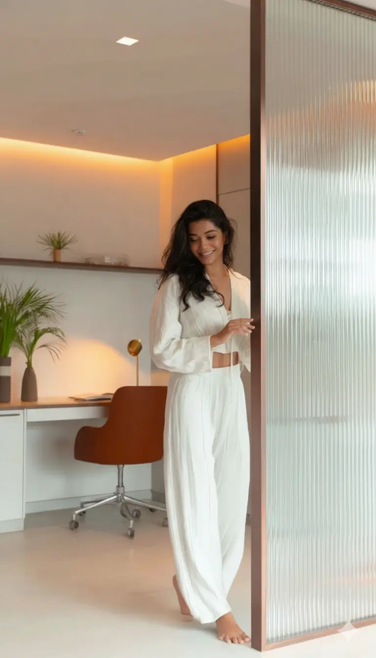 O vidro canelado é versátil, ideal para portas, divisórias, boxes de banheiro e janelas, separando ambientes sem barreiras visuais.